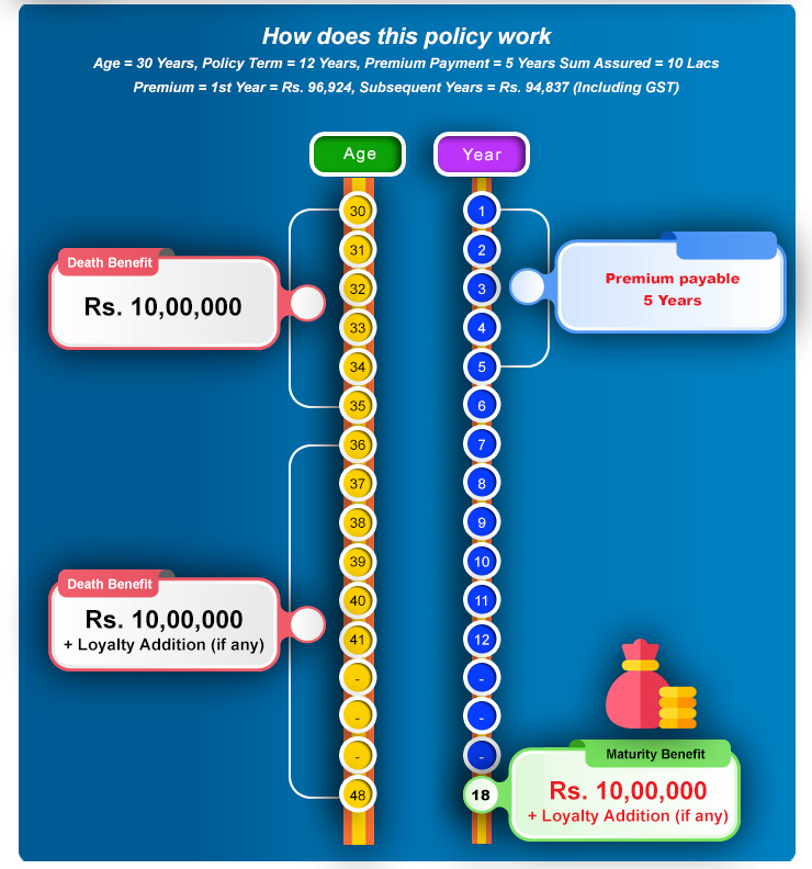 Single Premium: 62 Years (Near Birthday) Limited Premium Option-I: 75 Years Limited Premium Option-II: 80 Years