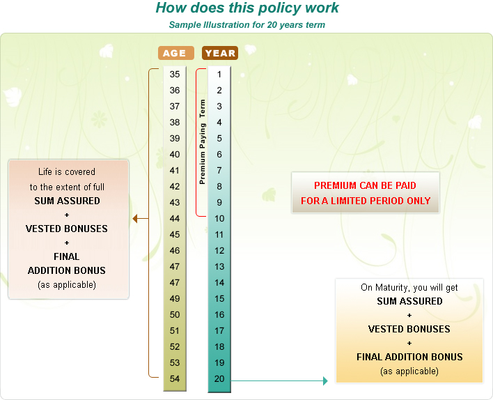 • MATURITY - Sum Assured + Bonus + Final Addition Bonus (as applicable) will be paid.